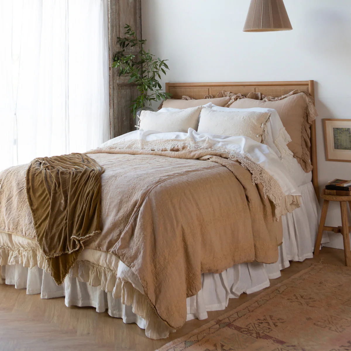 A stunning addition to the Ines collection, the Ines Bedspread summons attention with its all-over embroidery pattern interspersed with textural bands of intricate cotton embroidery. An understated satin binding joins the embroidered midweight linen front and signature linen back on this handcrafted work of art. Lightly padded and machine washable, this bedspread feels as enchanting as it looks.